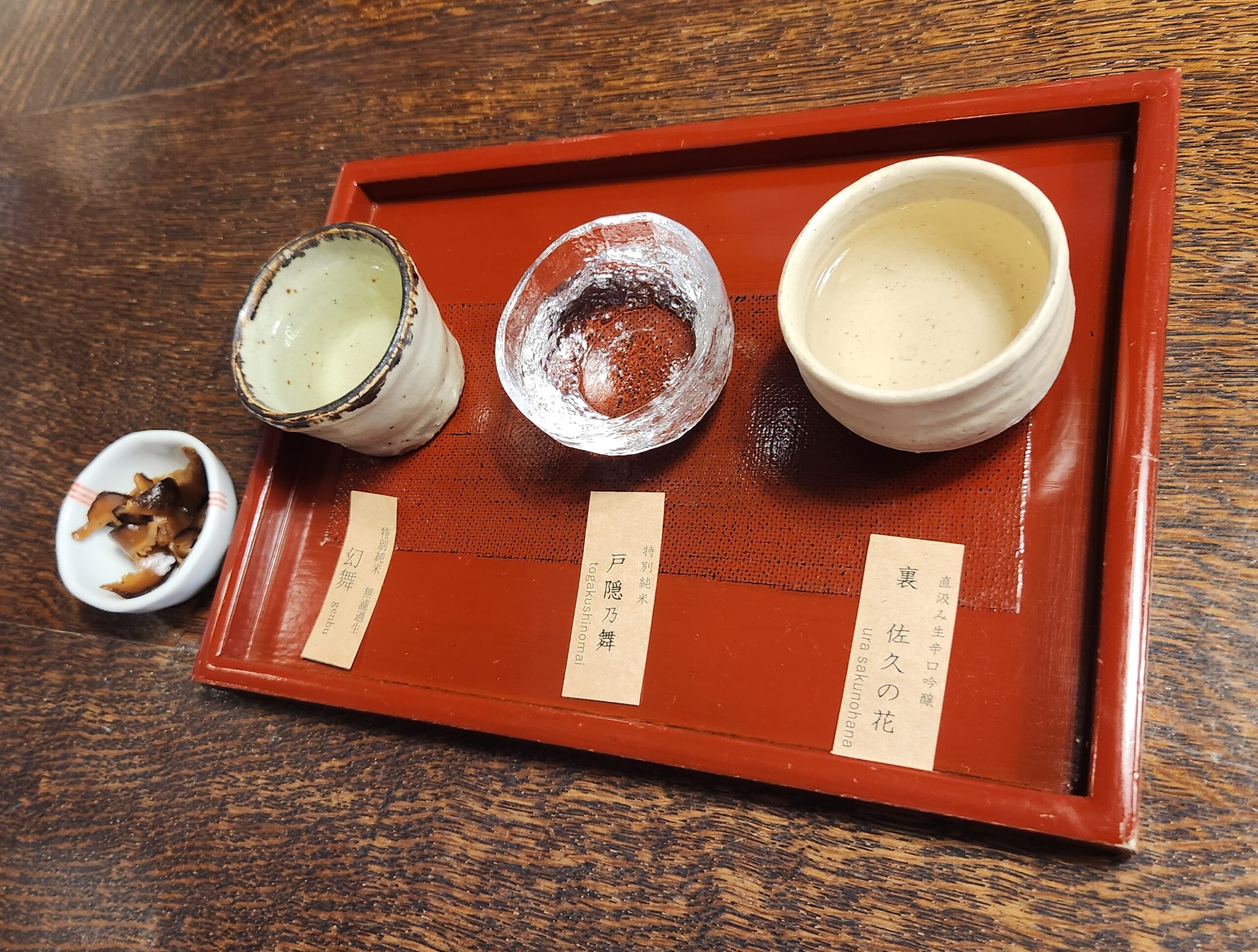 松本君は日本酒の飲み比べやお蕎麦、つまみを。